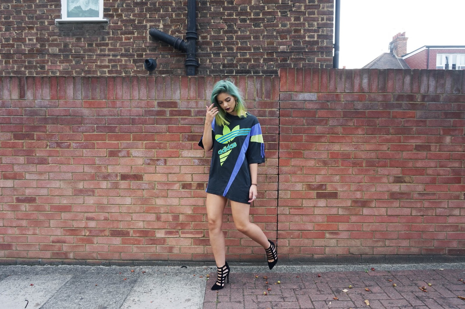 I got these fab heels from Simmi Shoes recently and I was stuck on what to style them with. I wanted to create a really cool outfit that stood out, so when I received this Loot Vintage Adidas tee I thought yes!! Perfect!
