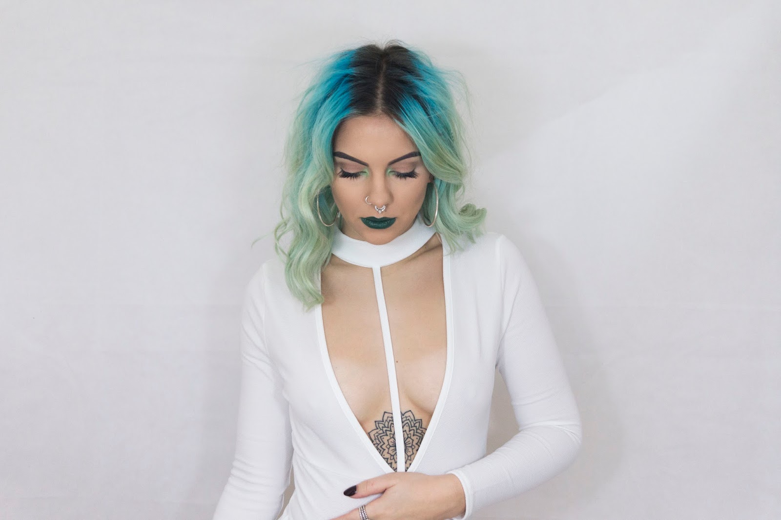 This body is from Boohoo and I love the choker neckline it’s got; I find chokers suit my face shape and grunge, 90s style. I also love how it shows off my mandala tattoo!