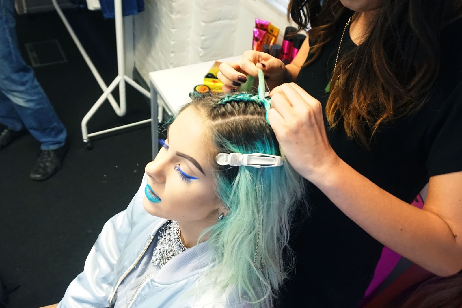 Day one started off with me getting my hair braided by Mark Hill at The Apartment; basically a really cool blogger hangout. I managed to shoot my outfit here for you all to see and this is where I met up with a couple of my blogger friends. After catching up with everyone and eating every blue fizzy bottle in sight (they’re my favourite) I popped off with Charlotte Hole (blogger of CH32) to backstage at PPQ.