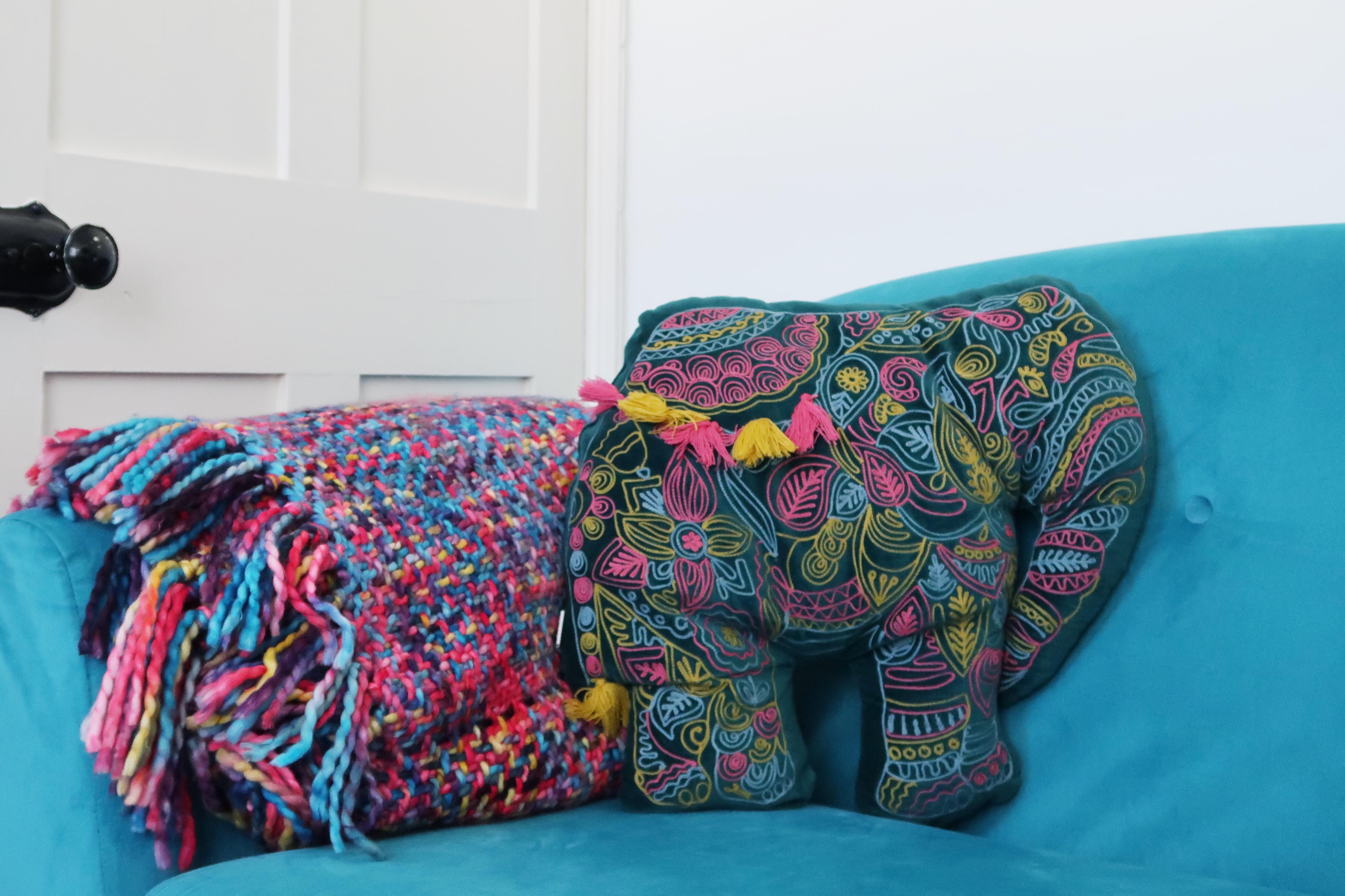 When I saw this Elephant Cushion on Joy I fell in love and instantly pictured it in my living room. The colours of the threading matched my pink and turquoise theme perfectly and it had to take a spot on my sofa.