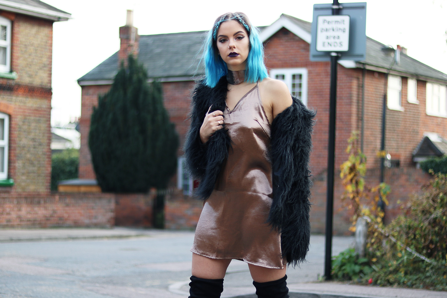 Satin Slip Dress: In The Style // Faux Fur Coat: Prettylittlething // Over The Knee Boots: Ego Shoes