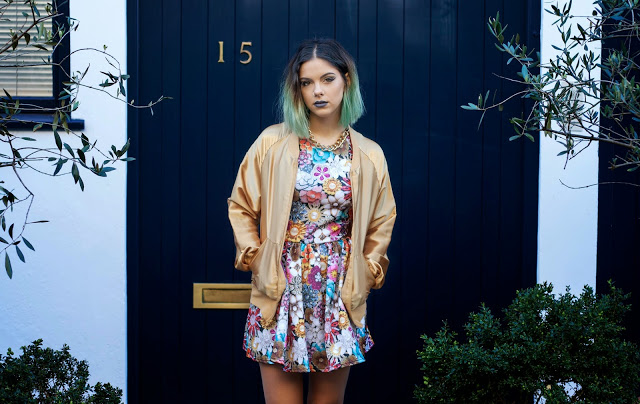 When I saw this brooch jewell print dress I fell in love! I love skater style dresses, I think they suit my figure well being a bit bigger on my bottom half. Styling it up for my recent blog shoot with photographer Ashleigh Amy Bell, I opted to dress it down and make it more of a day look. I paired my gold silky bomber jacket with the dress as the gold complimented the jewell print and gave it the dressed down vibe I wanted to achieve.