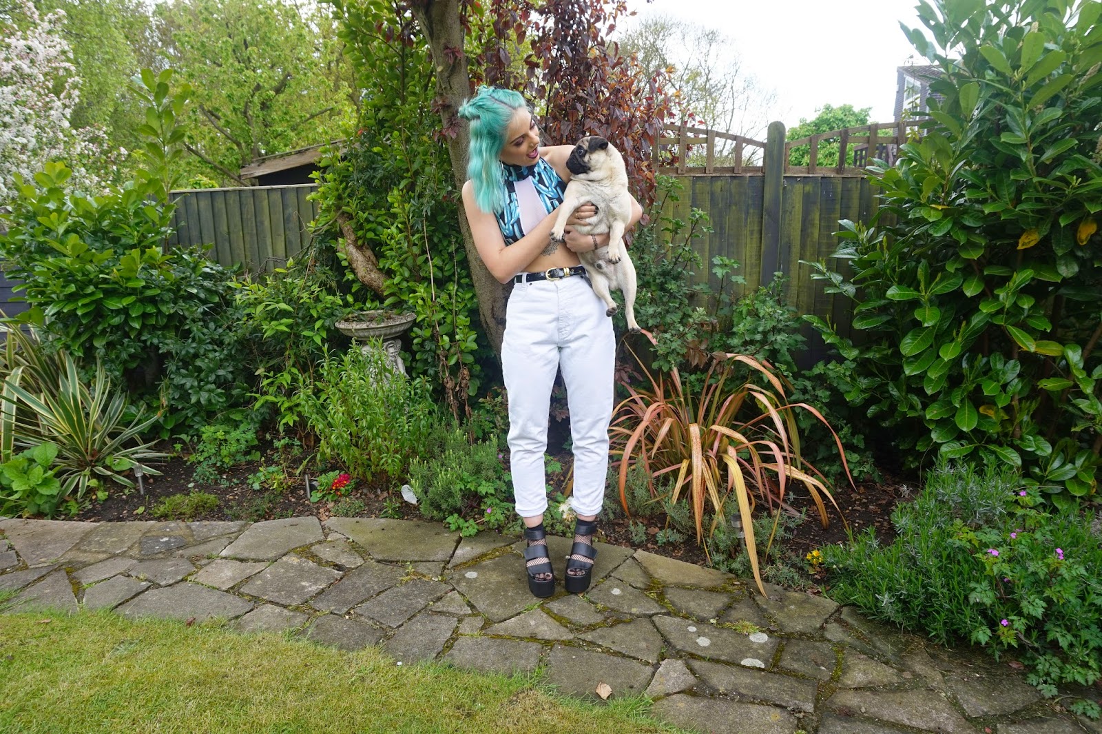 I thought it would be cool to do a classic blogger photo with a pug dog, forgot I was wearing white jeans though and I’m pretty sure you can guess what happened to them afterwards…. Muddy paw prints up both legs! I had to pop Bruno (puggys name) back inside halfway through shooting because my jeans were getting muddier and muddier. He loves jumping up at me for some reason. He is still a puppy and because I don’t live at home he gets excited when I come back because he remembers I always play ball games with him.