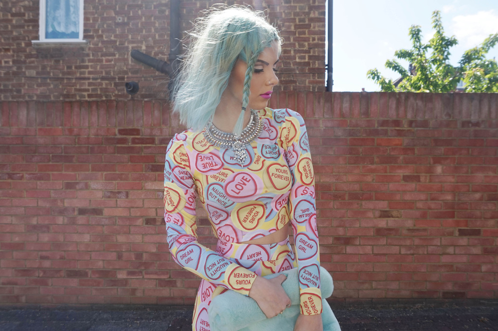 Isn’t this just the COOLEST coord ever?! Who ever doesn’t like love heart sweets leave now. I’m joking. But seriously if you don’t like love heart sweets you will probably hate this whole outfit.