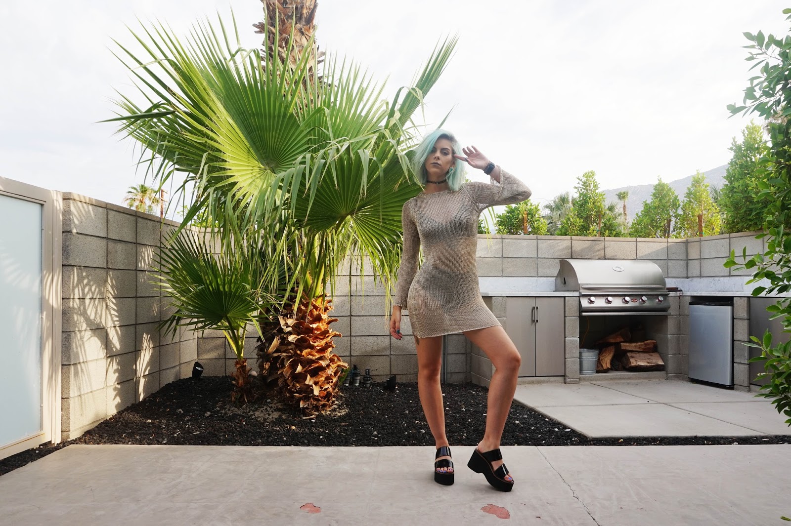 With this knit dress I opted for the same undergarments as the previous mesh dress. I feel like these staple black pieces work well layered underneath see through garments because they emphasise the figure.