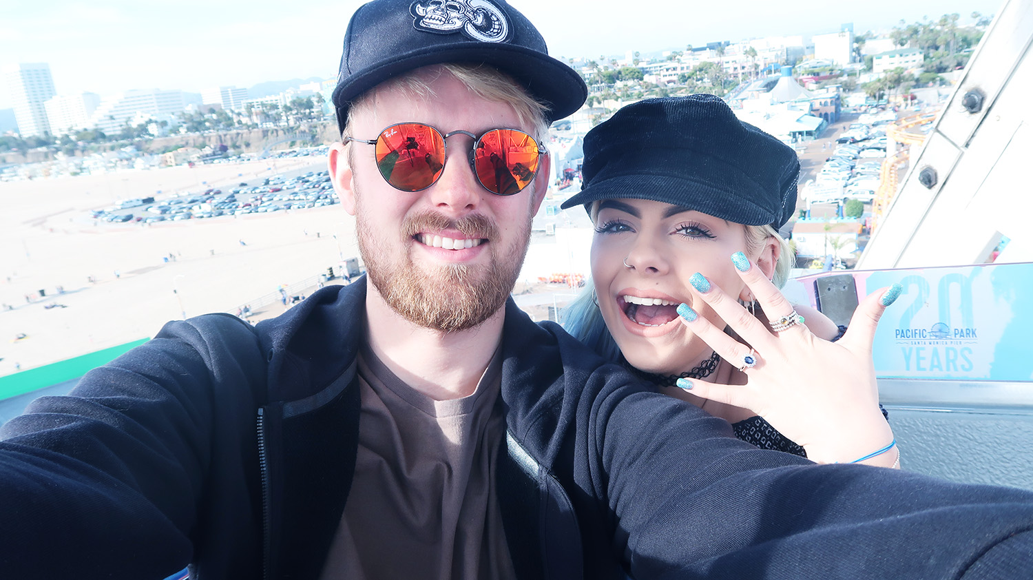 WOW! What a week in LA I’ve had! Straight after Coachella, I headed back to LA to meet Robin at the airport as he had flown out to meet me. We had planned to spend a week in LA together and I was so excited. His flight arrived around 2pm and we headed straight to our hotel to check in. We were staying at The Line in Koreatown; I’d seen a few bloggers had stayed their before and thought it looked pretty cool and central. We pretty much dumped our stuff and headed straight out as otherwise I think Robin would have crashed after his 11 hour flight. We got an Uber to Santa Monica which took about 30 minutes and began our evening on the pier. Robin kept mentioning about going to the pier and on the ferris wheel, which got me thinking… A few things had happened before the trip that made me think he was going to propose, but I wasn’t certain. However when he kept mentioning about wanting to do things, it got me nervous! In my head I kept saying ‘oh my god is he going to do it? If he doesn’t don’t be disappointed’… Anyways, we went on the ferris wheel and within a few minutes, he whipped a ring out of his pocket and got down on one knee!!!!! After about 5 minutes of saying ‘oh my god are you serious?! Is this really happening?!’ I said YES! What a way to start our week eh! We were so happy and excited after the HUGE thing that had just happened and thought we’d celebrate with one of our favourite meals… American diner food! We dined at Baby Blues BBQ and it was delicious!