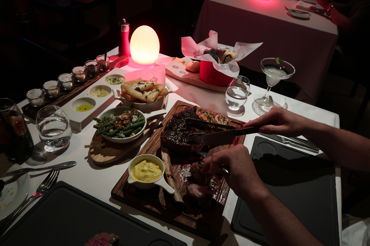 CHAR: This restaurant was actually based in our hotel on one of the top floors. You get to enjoy the views over the bund whilst eating the most amazing food. Robin and I opted to share a steak between us and we have to say, it’s the best one we’ve ever tried. You even got to pick your own steak knife from a briefcase and were offered a selection of salts from all over the world. Great food and a great view.