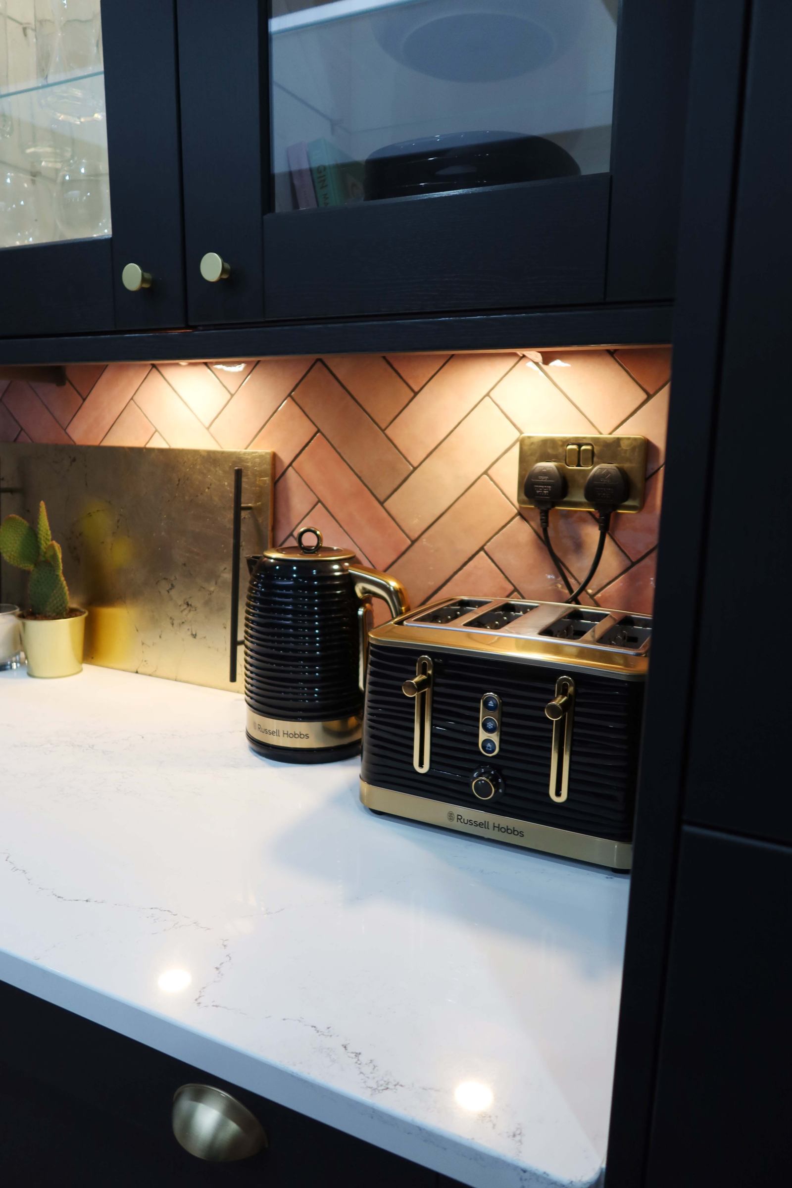 Now one of my goals was to have a boiling water tap for instant hot water. Sadly I had to compromise but hey I found a black and gold matching kettle and toaster so it's all good! Basically with a butler sink you don't have enough room underneath to store the hot water tank system for the instant boiling water, so it would have meant taking up the cupboard next to the sink which housed the dishwasher and bins. It just didn't work for us. But there's something kinda nice about boiling the kettle and then whilst you're waiting you're setting up your mug with your tea bag and grabbing your cookies. So I don't mind so much.
